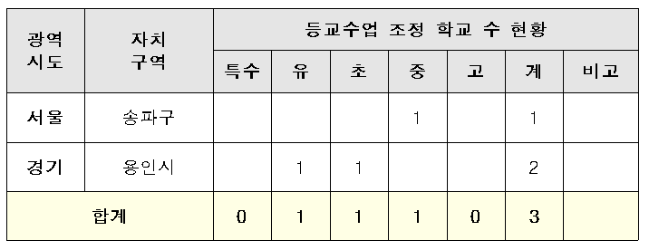 - 7.29.(수) 10:00 기준, 2개 시·도 3개교 등교수업일 조정