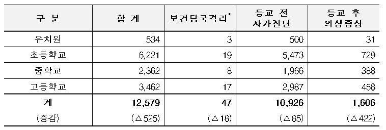 학생 미등교 사유별 현황(7.28. 16시 기준) <단위 : 명>
