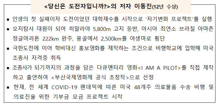 아울러, 「대한민국 인재상」 수상 이후에도 청년 인재들은 아름다운 도전을 지속적으로 이어가고 있으며, 구체적인 사례는 다음과 같다.