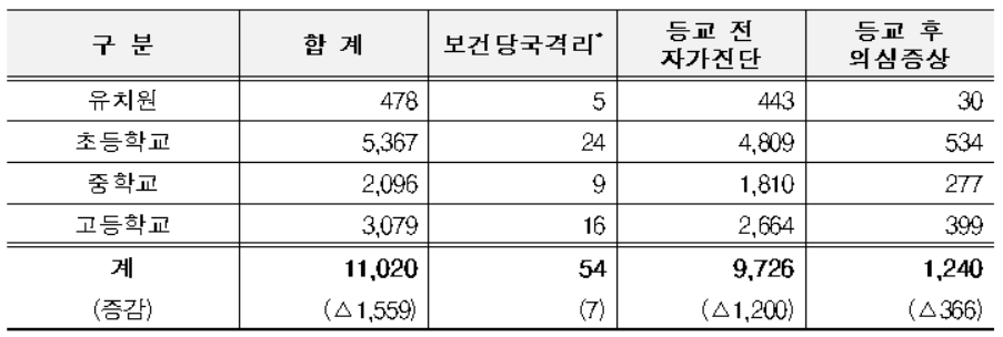 학생 미등교 사유별 현황(7.29. 16시 기준) <단위 : 명>