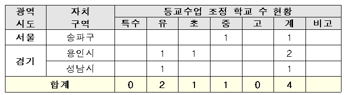- 7.30.(목) 10:00 기준, 2개 시·도 4개교 등교수업일 조정