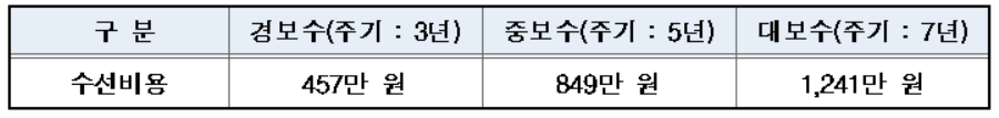 - 자가가구에 대한 주택 수선비용은 주택 노후도에 따라 구분한 보수범위(경/중/대보수)별 수선비용을 올해와 동일한 수준으로 지급한다.