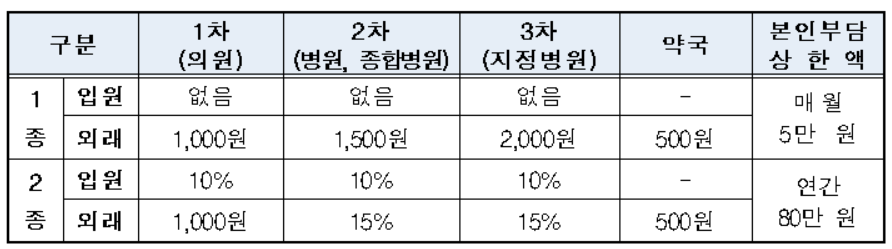 ○ 의료급여는 기존과 동일하게 급여대상 항목에 대한 의료비 중 수급자 본인 부담 금액을 제외한 전액을 지원한다.