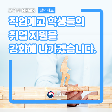 이러한 노력에 그치지 않고, 앞으로도 직업계고 학생들의 취업 지원을 위해 관계부처 및 민간의 유관기관과 함께 범정부 차원에서 공동으로 대응할 예정입니다.