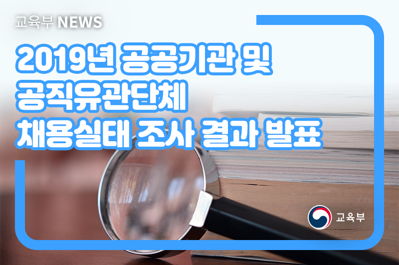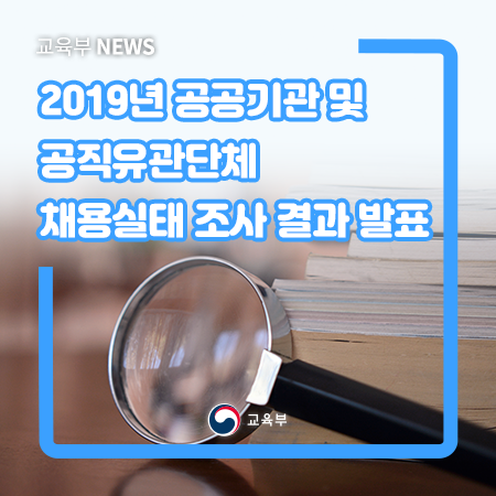 교육부(부총리 겸 교육부장관 유은혜)는 8월 10일(월), 2019년 ‘공공기관 및 공직유관단체(이하 공공기관)에 대한 채용실태 조사 결과’를 발표하였다.