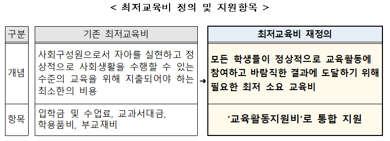 * 최저교육비를 재정의하여 기존의 ‘결핍’ 충족 모형에서 ‘성장’ 지원 모형으로 전환
