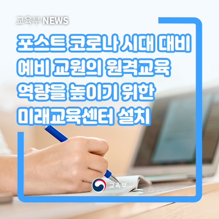 교육부(부총리 겸 교육부장관 유은혜)는 예비 교원의 미래교육 역량을 강화하고 공교육을 지원하기 위해 교원양성대학*에 미래교육센터를 설치하는「교원양성대학 원격교육 역량강화 사업 계획」을 발표하였다.