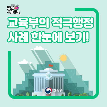 평소 국민의 편익을 증진하고 불편을 해소하기 위해 교육부는 적극행정 계획을 수립하여 소극적인 행정을 혁파하고 상황에 알맞은 대응을 하고자 노력하고 있는데요. 그렇다면 올해는 어떤 계획을 세워 국민의 상황에 맞춰서 대응하고 있을까요?