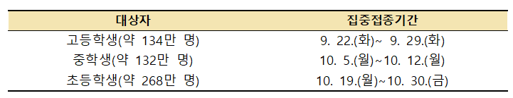 코로나19와 증상이 유사한 유행성 독감과 코로나19가 겹쳐 발생할 가능성에 대비하기 위해, 전국의 534만 명 모든 학생에게 9월부터 인플루엔자 무료 예방접종을 실시한다.