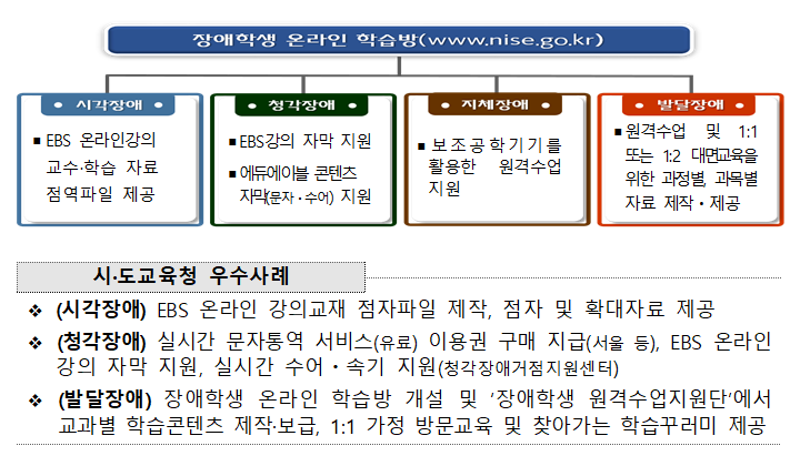 우선, 장애학생에게는 장애 유형·정도(시각, 청각, 지체, 발달) 등을 고려한 장애학생 맞춤형 수업을 지원한다.