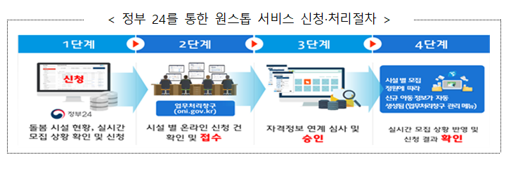 학부모가 안심하고 만족하는 돌봄을 받을 수 있도록, 연말까지 정부종합민원포털 정부24와 연계하여 초등 돌봄교실 정보를 통합적으로 제공하여 온라인 신청이 가능한 시스템을 구축하고,