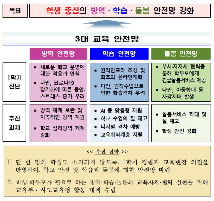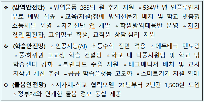 - 교육부ㆍ전국시도교육감협의회, 방역·학습·돌봄 3대 안전망 발표 -