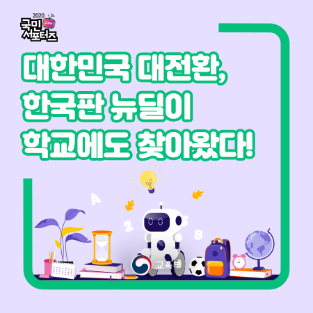 ‘한국판 뉴딜’이라고 들어보셨나요? 한국판 뉴딜이란, 코로나19 이후 경기 회복을 위해 정부가 발표한 정책으로, 2025년까지 디지털 뉴딜, 그린뉴딜, 안전망 강화라는 3가지 핵심 주제를 중심으로 분야별 투자 및 일자리 창출을 이루는 것을 목표로 하고 있습니다. 이 정책은 교육 현장에서도 큰 변화를 불러일으키게 되는데요. 과연 한국판 뉴딜이 교육 현장에서는 어떻게 적용되는 걸까요?