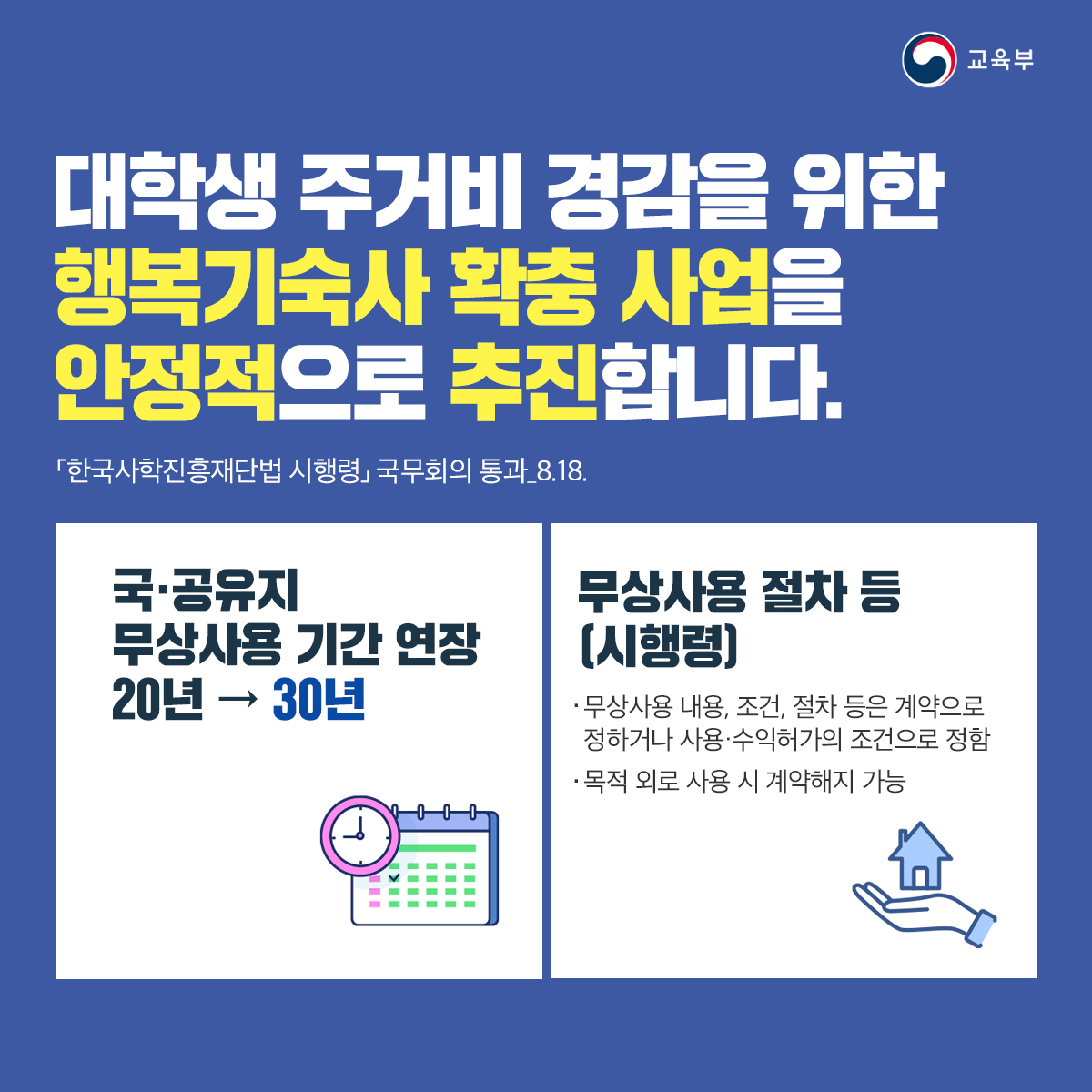#한국사학진흥재단법 #행복기숙사 #대학생주거비경감 #교육부