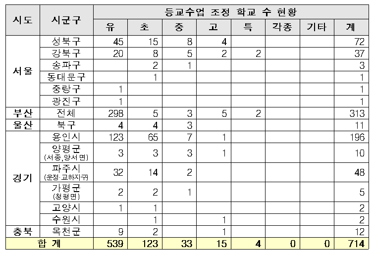 8.20.(10시 기준) 5개 시·도 714개 학교가 등교 수업일 조정 중