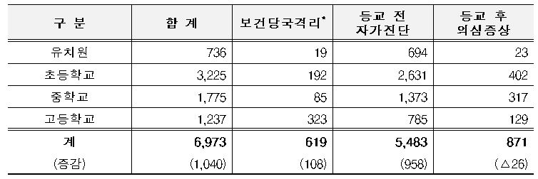 학생 미등교 사유별 현황(8.19. 16시 기준)<단위 : 명>
