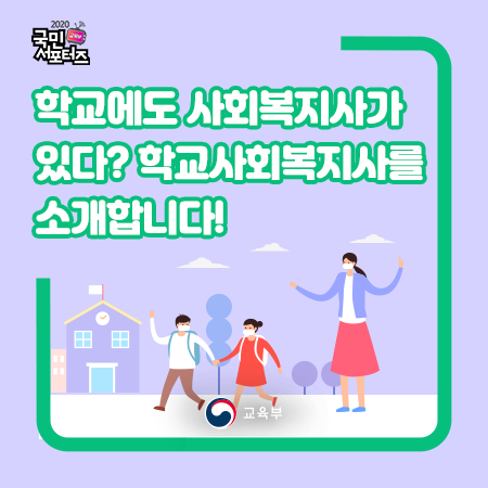 학교에는 학생과 선생님 말고도 많은 분들이 계시는데요! 오늘 소개해드릴 분은 바로 학교사회복지사 선생님입니다! 학교 사회복지사란 어떤 분인지, 어떤 일을 수행하시는지, 어떤 역할을 하는지 알아보겠습니다.