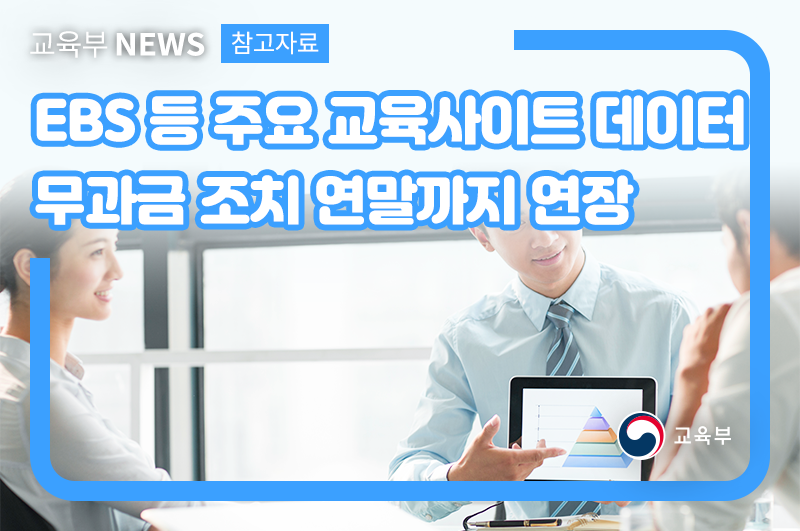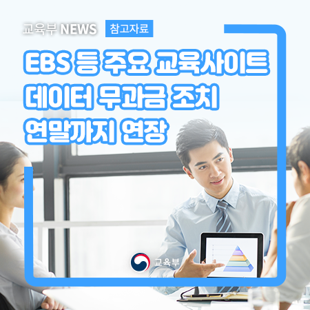 교육부(부총리 겸 교육부장관 유은혜)와 과학기술정보통신부(장관 최기영)는 최근 코로나19가 확산되어, 수도권 및 부산 소재 학교를 대상으로 강화된 학교 내 밀집도 최소화 조치 등이 시행됨에 따라, 통신 3사와 협력하여 스마트폰으로 접속 시 EBS 등 주요 교육사이트 데이터 사용량을 차감하지 않는 조치를 올해 연말까지 연장하기로 긴급 결정하였다.