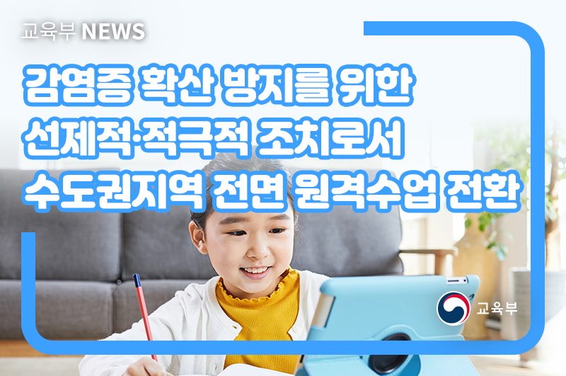 감염증 확산 방지를 위한 선제적·적극적 조치로서 수도권지역 전면 원격수업 전환 본문