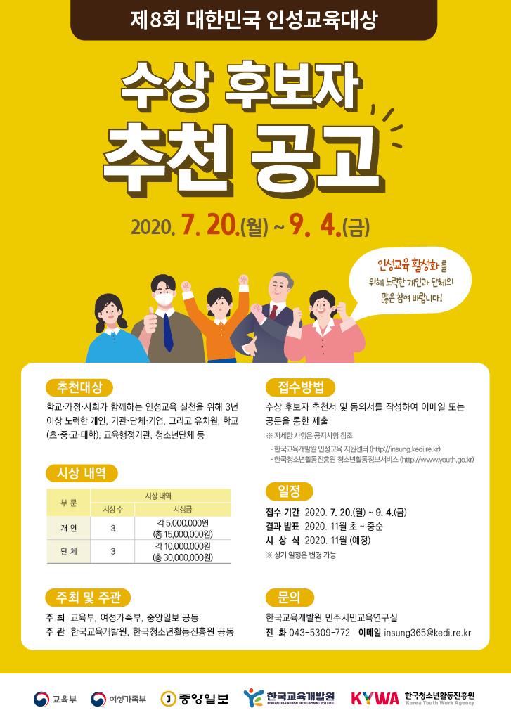 한국교육개발원 민주시민교육연구실제8회 대한민국인성교육대상 후보자추천 담당자