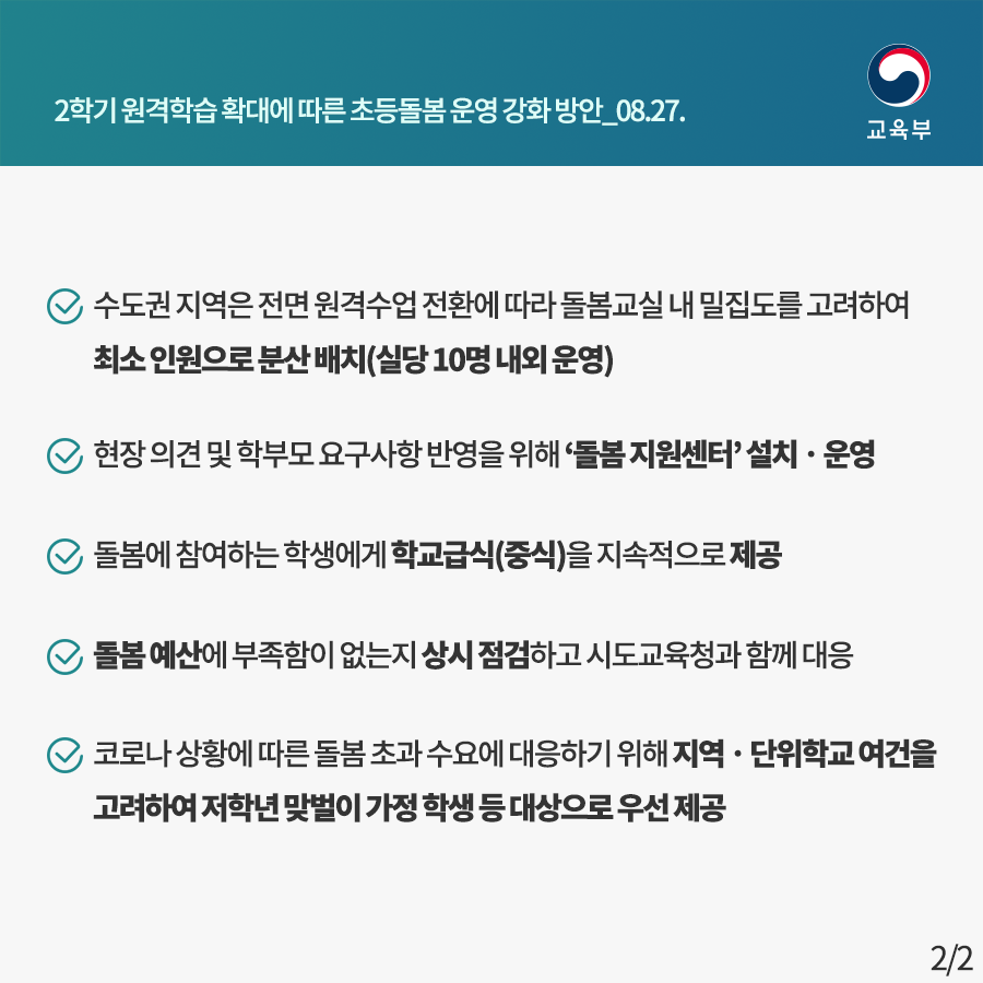 [원격학습 확대에 따른 초등돌봄 운영 강화 방안] 본문