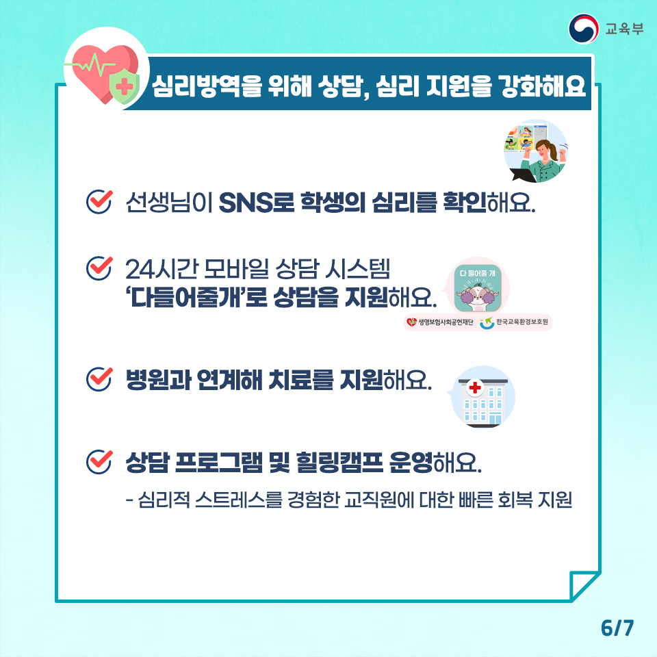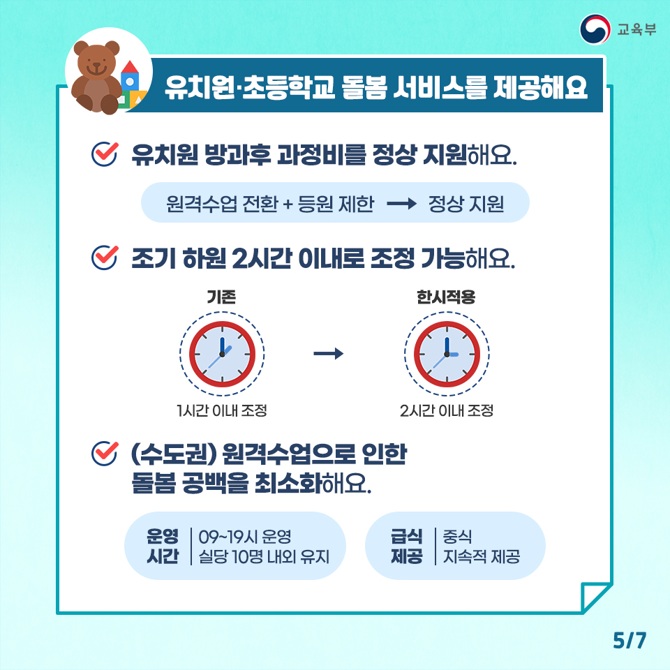 돌봄서비스 제공, 심리지원 강화 등