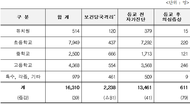 학생 미등교 사유 및 진단검사 현황