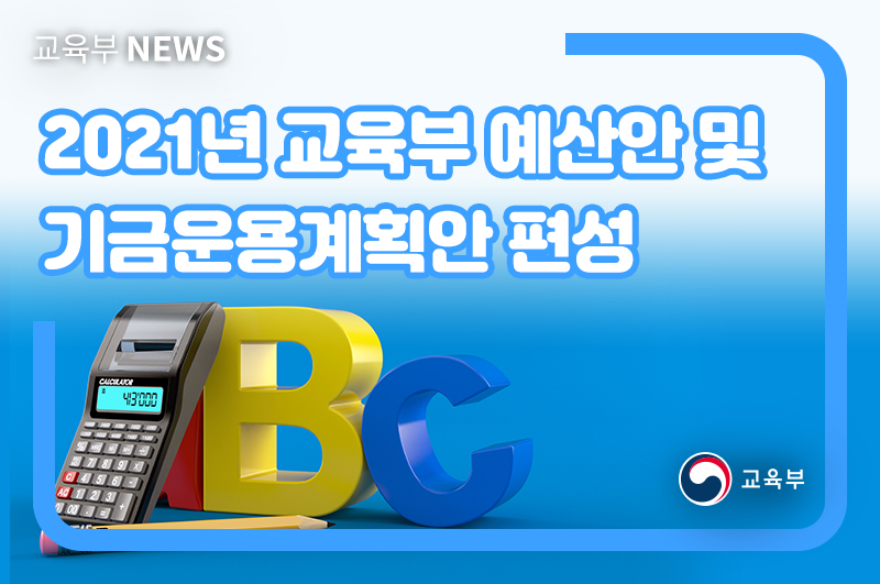 교육부 소관 2021년 예산안은 ➊학교의 비대면 원격교육 운영 지원과학습안전망 강화,➋그린스마트 미래학교‧사람투자등 한국판 뉴딜의 추진, ➌고교무상교육 고교 전 학년 시행 등가계 교육비 부담 경감, ➍국가 혁신성장의 동력이 될대학 경쟁력 강화 및 학문후속세대 양성에 중점을 두고 편성되었다.