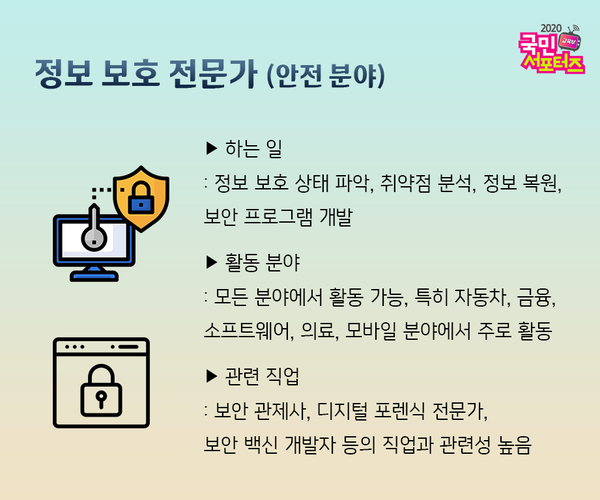 : 보안 관제사, 모의 해킹 전문가, 침해 대응 전문가, 디지털 포렌식 전문가, 보안 백신 개발자, 악성 코드 분석 전문가, 정보 보호 컨설턴트, 보안 솔루션 개발자 등의 직업과 관련성이 높습니다.