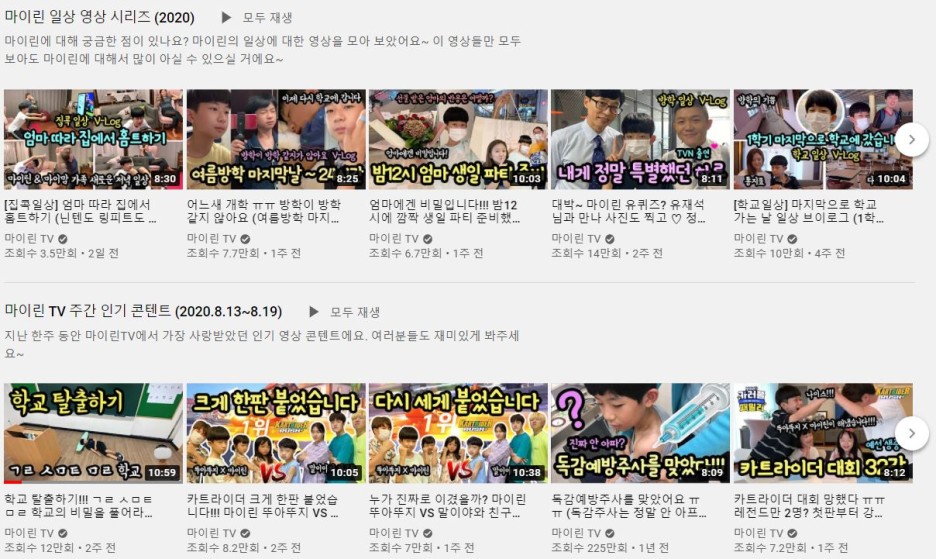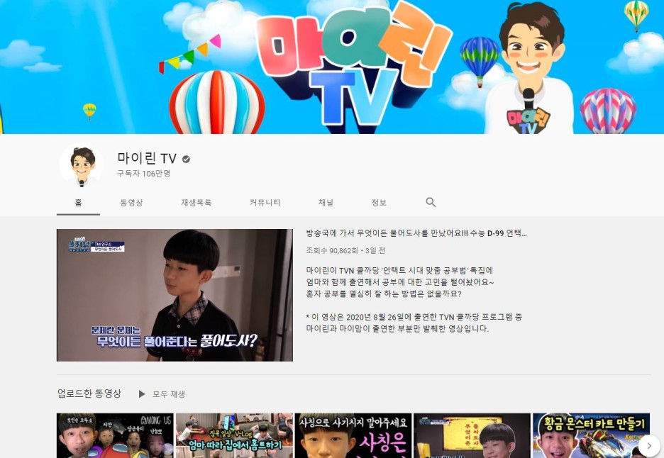첫 번째로 강연자 소개가 있었습니다.강연자는‘마이맘’, ‘마이린’이라는 활동명을 가진 유튜버였습니다.두 분은 모자지간으로 간단한 채널 소개와 소소한 에피소드를 풀어주었습니다.중학교2학년인 최린 군(마이린)그 가족들이 함께 운영 중인‘마이린TV’는 정보 전달을 위주로 하는 채널입니다.현재 약107만 명에 달하는 구독자를 보유한 대형 유튜버인데요.채널은 유튜브 키즈 데이 행사에서 진행된 장난감 증정 이벤트에 참여하기 위해 시작되었다고 합니다.