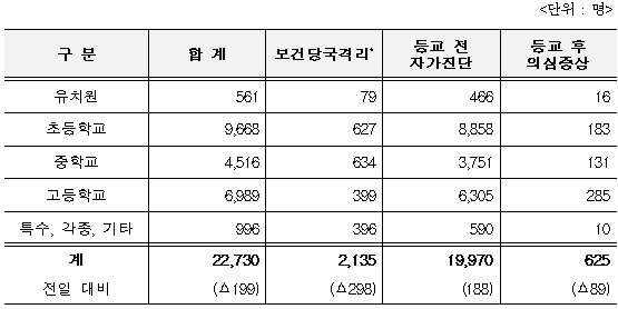- 등교 이후 확진자 누계 9.2.(수) 00시 대비 학생 8명, 교직원 1명 증가 【누계 548명(학생 445명, 교직원 103명)】