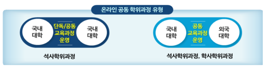 국내대학이 단독 또는 공동으로 운영하는 온라인 석사과정 및국내-해외대학간 공동 온라인 학‧석사 학위과정 운영을 허용한다.