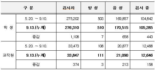 ※ (학생)9.11. 확진 3명 / 9.12. 확진 1명 / 9.13. 확진 3명(교직원)9.11. 확진 2명 / 9.12. 확진 1명
