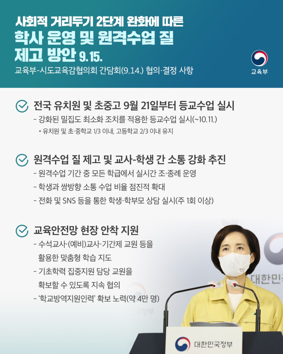 ✔ 21일부터 수도권 학교 등교수업 재개