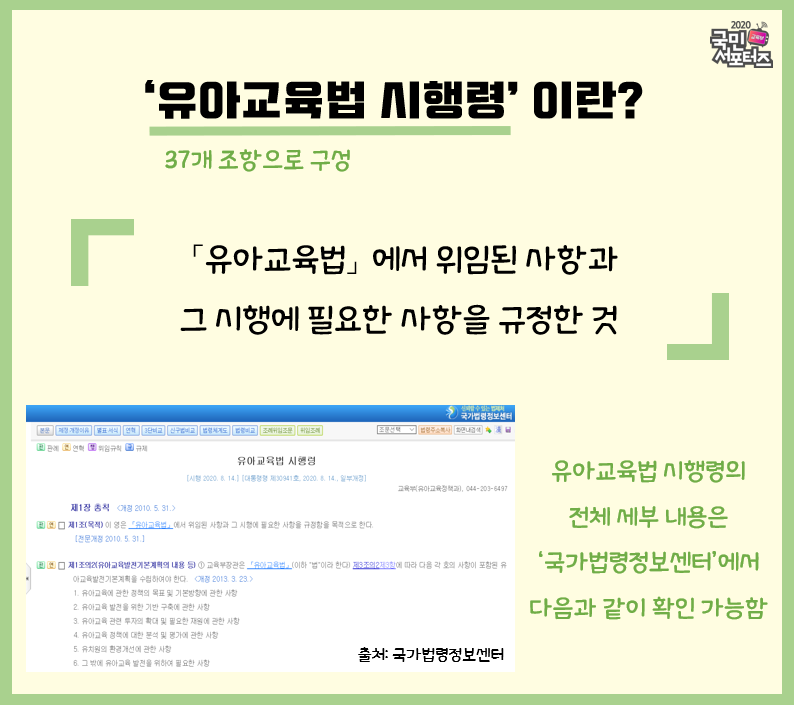 그럼 이제 ‘유아교육법 시행령’이란 무엇인지 알아보도록 할게요!