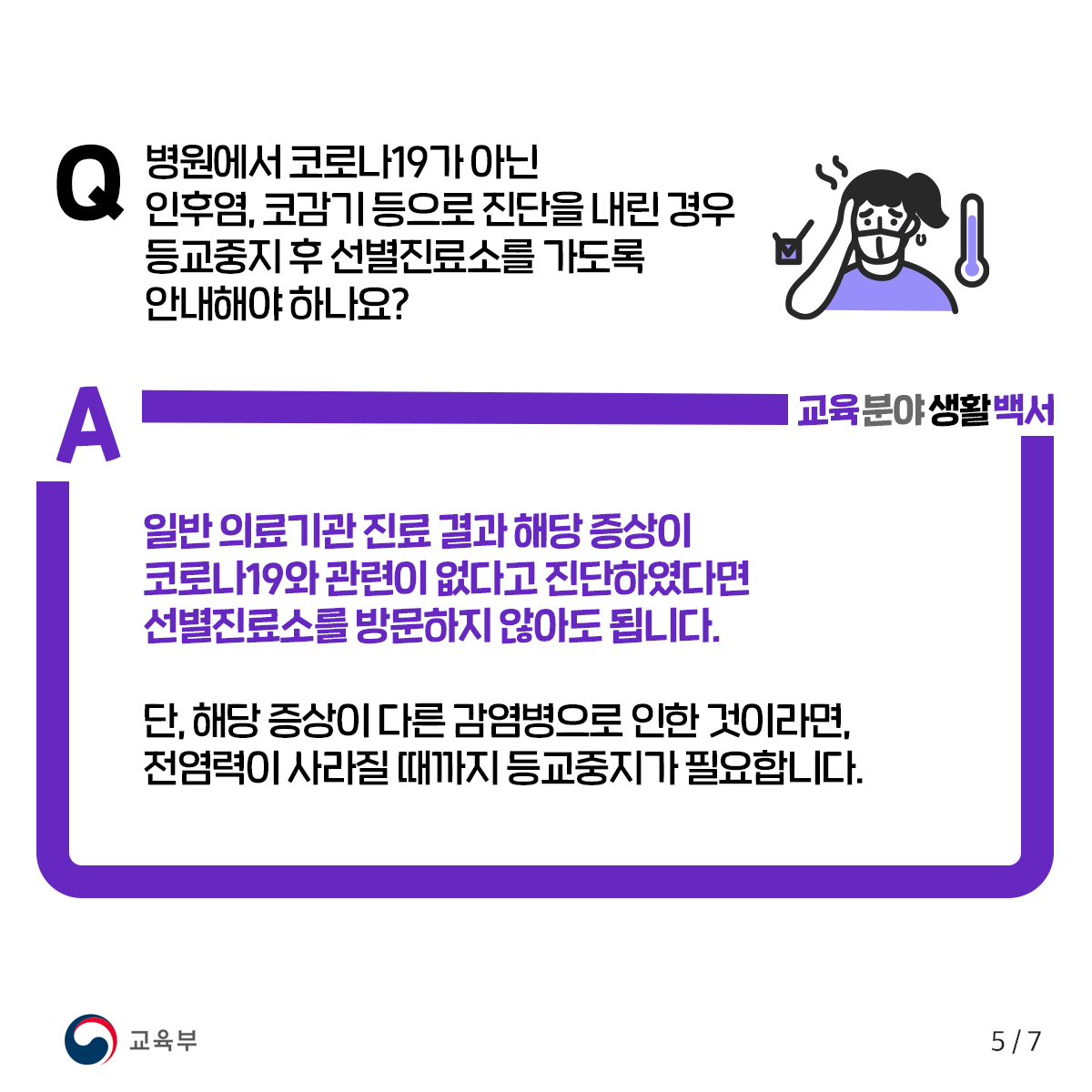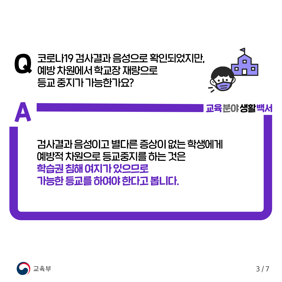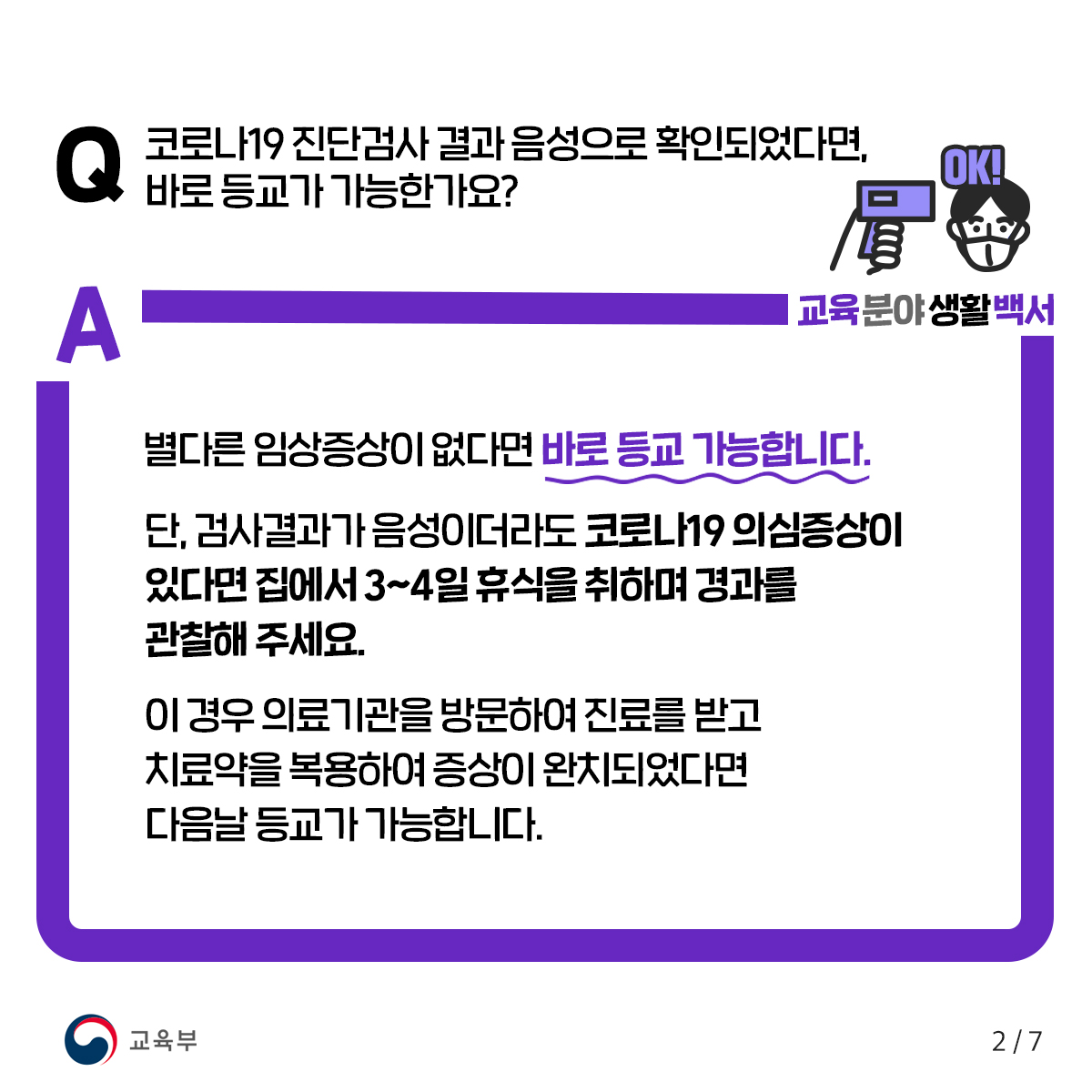 "코로나19 진단검사 음성이 나왔는데 등교해도 되나요?"