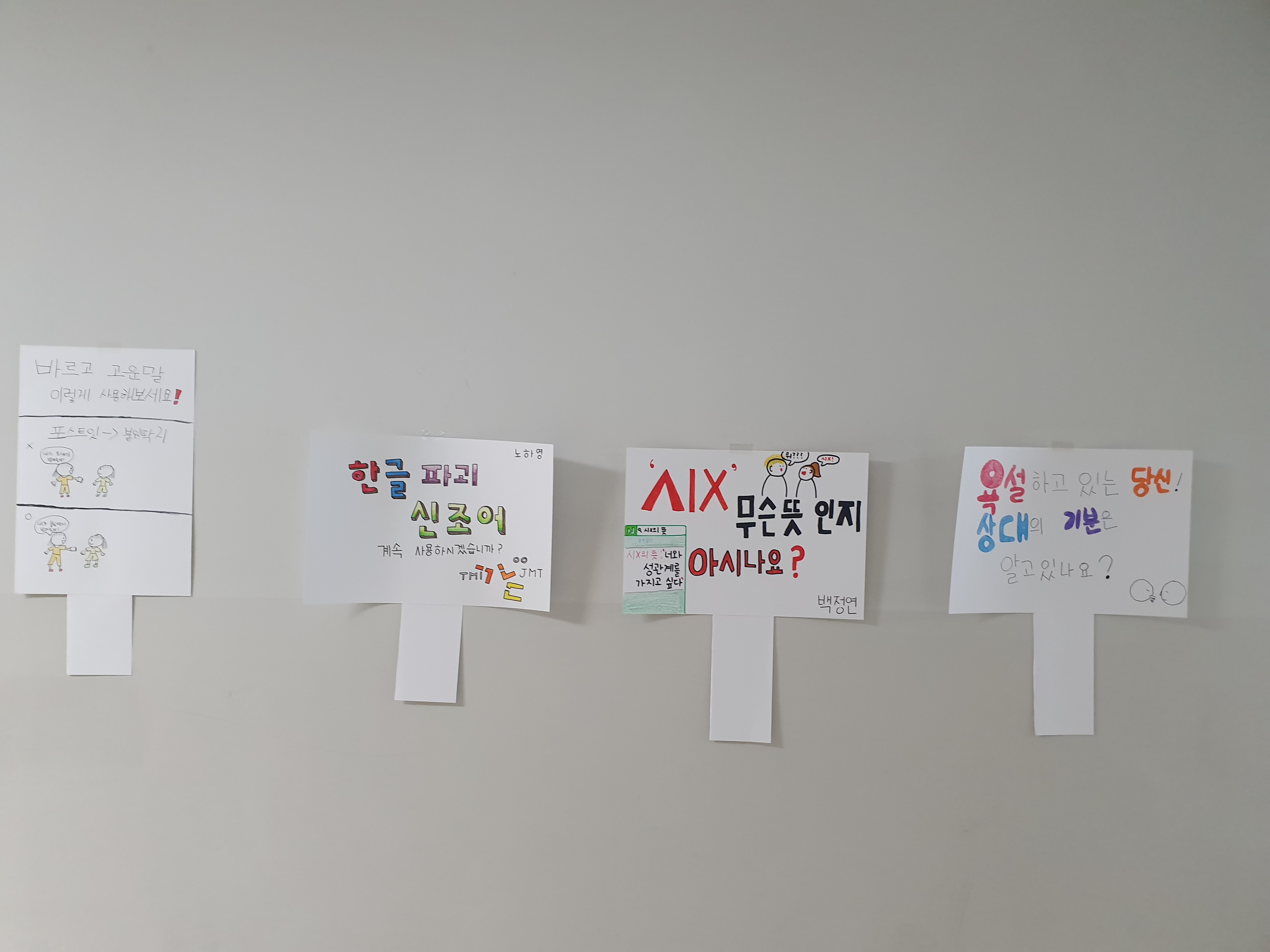이와 같은 활동을 통해 학생들이 우리말의 소중함을 알고, 왜 고운 말을 써야 하는지에 대해 깨닫고, 대한민국의 많은 학생들이 일상생활에서 예쁘고 바른 말을 써서 행복하고 건강한 대한민국이 되기를 소망합니다.