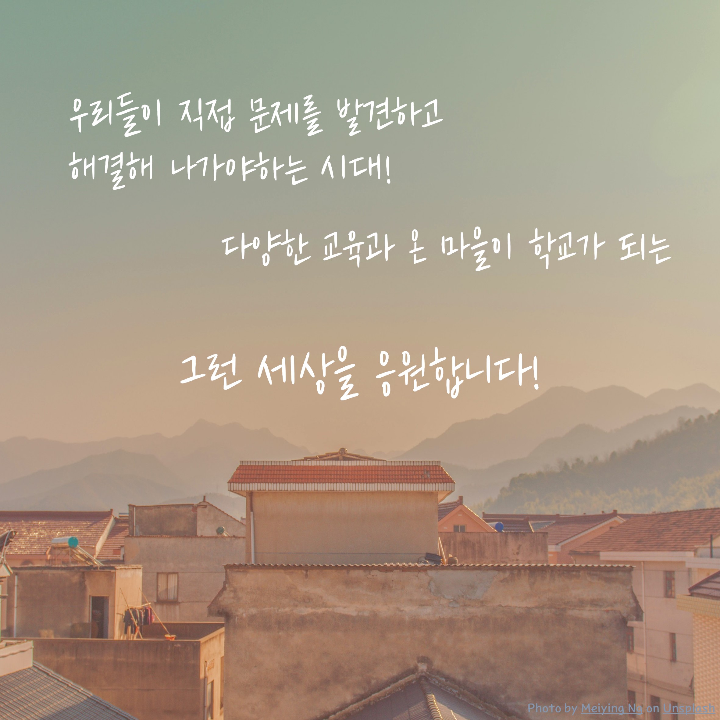4차 산업혁명의 앞에서 다양한 교육과 온 마을이 학교가 되는 세상을 응원합니다!"