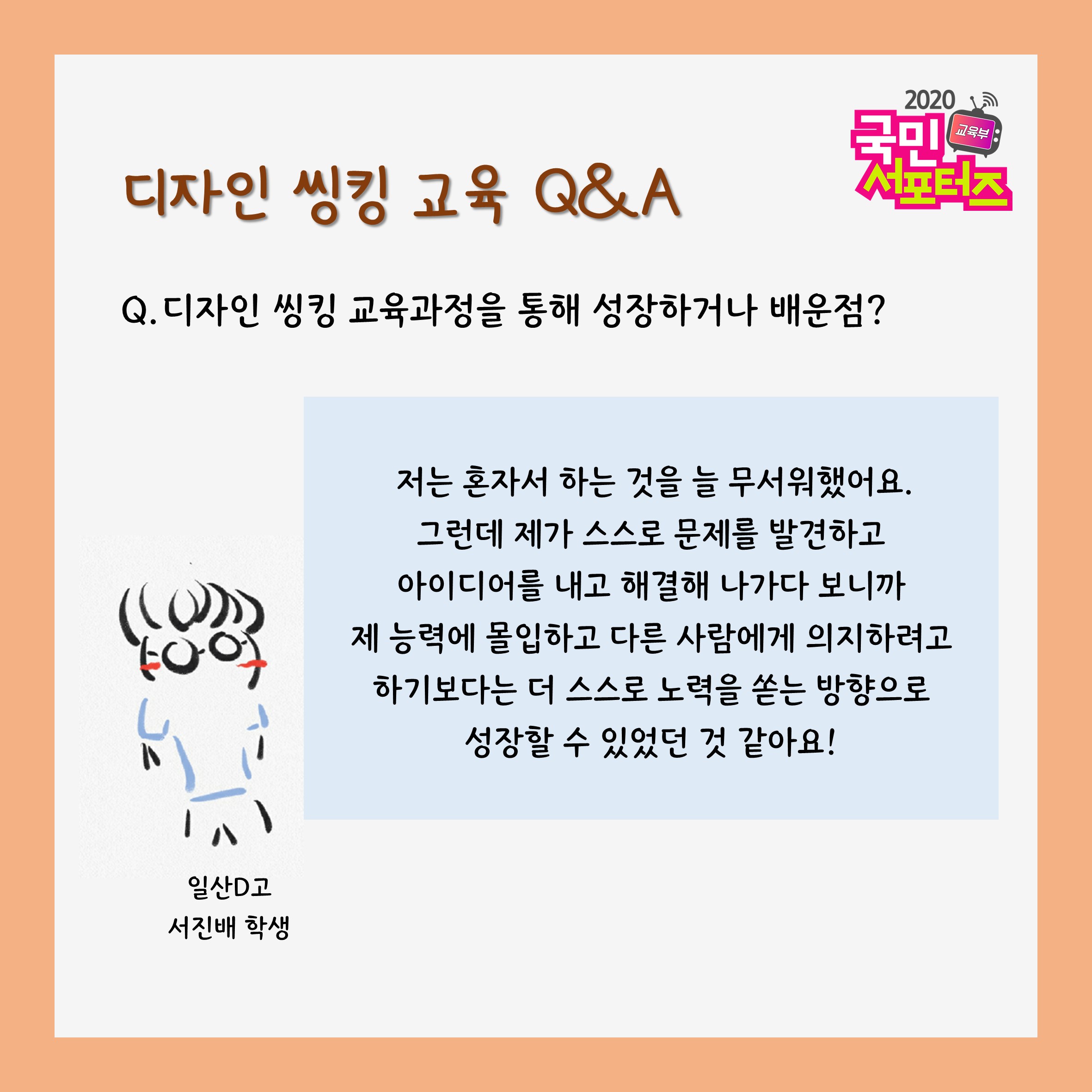 Q. 디자인 씽킹 교육을 통해 성장하거나 배운 점이 있다면, 그리고 이 교육을 추천한다면 어떤 말을 해주고 싶나요?