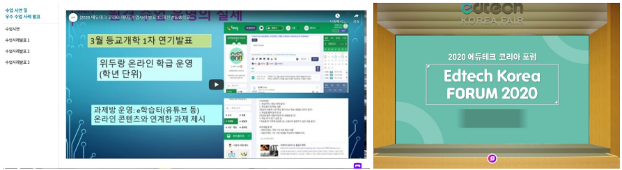 특히 원격수업에 대한 다양한 사례발표를 처음부터 꼼꼼하게 볼 수 있었고, 어떤 방법으로 운영했는지에 대해 선생님들께 직접 들을 수 있어서 좋았습니다. 오히려 부스였다면 많은 것을 놓치지 않았을까 생각해봅니다. e학습터와 위두랑, 구글 클래스룸 등 다양한 플랫폼을 이용하여 교육을 위해 선생님들이 최선을 다하고 있다는 것을 알 수 있었습니다.