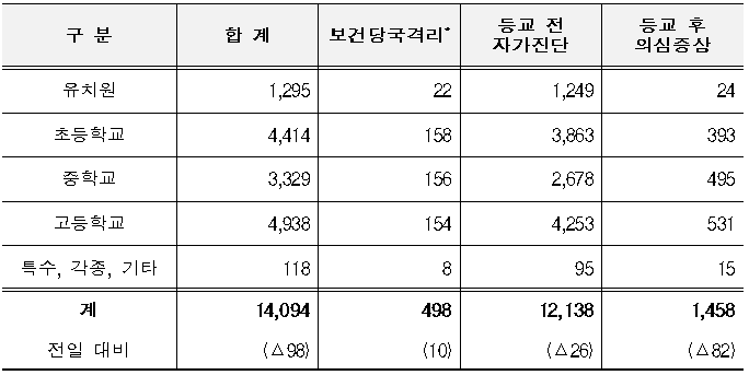- 9.22.(10시 기준) 124교에서 19교 감소(7교 등교수업 조정, 26교 등교수업 개시)