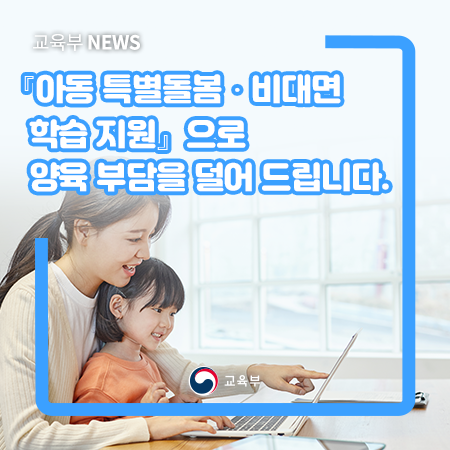 □보건복지부(장관 박능후), 교육부(부총리 겸 교육부장관 유은혜), 여성가족부(장관 이정옥)는 9월 22일(화) 국회에서 의결된 「아동 특별돌봄ㆍ비대면 학습 지원」 사업을 본격적으로 추진한다고 밝혔다.