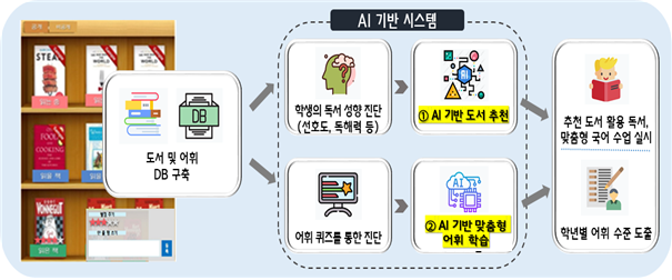 ![]() (이용 대상) 전국 초등학교 3~6학년 학생 및 교원 ※ 전국 3~6학년 초등학교 학생 수 1,815,432명(2019년 기준) (제공 기능·서비스 내용 및 효과) 학생과 교사의 ‘한 학기 한 권 읽기’ 수업 지원 및 인공지능(AI) 기반 도서추천, 어휘 학습 기능 제공 ① 학생의 독서 이력·독서 성향을 분석하여 AI기반 ‘맞춤도서’ 추천 및 도서 검색 지원 ② 어휘 학습 프로그램을 통해 학생의 어휘력 진단·보정 및 초등 어휘 등급에 대한 보다 구체화된 자료 산출, 교육용 어휘 선정 또는 교재 개발에 활용 ③ 초등학교 교사들이 도서 관련 목록 및 교수·학습 자료를 쉽게 검색·이용·공유할 수 있는 기능 제공 (효과) 학생의 독서 성향, 독서 이력 정보 누적을 통한 인공지능(AI) 기반의 도서 추천, 어휘력 학습으로 개별화·맞춤형 국어 수업 실현 |