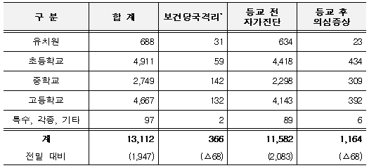 - 9.29.(10시 기준) 76교에서 54교 감소(19교 등교수업 조정, 73교 등교수업 개시)