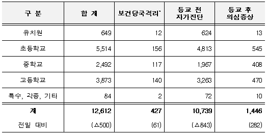 학생 미등교 사유 및 진단검사 현황