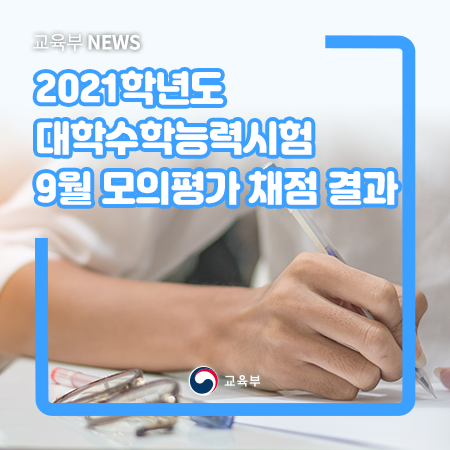 한국교육과정평가원은 지난 9월 16일(수) 전국적으로 실시된 2021학년도 대학수학능력시험(이하 수능) 9월 모의평가 채점 결과를 10월 14일(수)에 수험생들에게 통지하였다. 개인별 성적통지표는 접수한 곳(재학 중인 학교, 시험 지구 교육청, 출신 학교 등)을 통하여 수험생에게 교부하였다. 아울러 수험생 진학 지도를 위해 「영역/과목별 등급 구분 표준점수 및 도수분포」자료도 공개하였다.