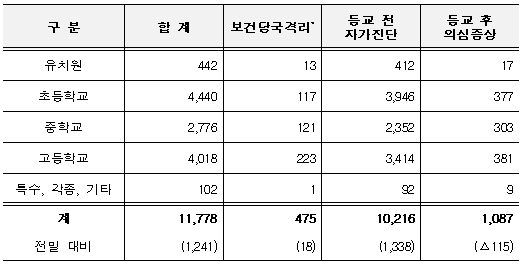 - 10.13.(10시 기준)21교에서 1교 감소(6교 등교수업 조정, 7교 등교수업 개시)