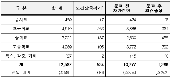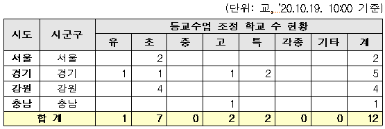 - 10.16.(10시 기준)27교에서 15교 감소(7교 등교수업 조정, 22교 등교수업 개시)