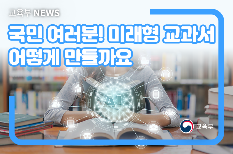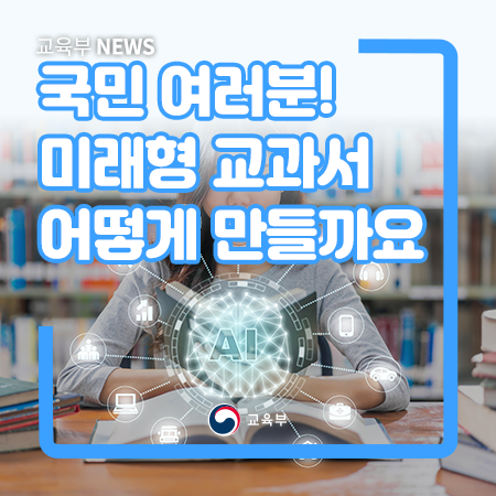 교육부는 융합·연계중심의 미래교육 환경에유연하게 적응할 수 있도록 다양한 형태의 교과서가 자유롭게 저작・발행・활용될 수 있는 「미래형 교과서」로의 체제 개편을 적극적으로 추진하고 있다.