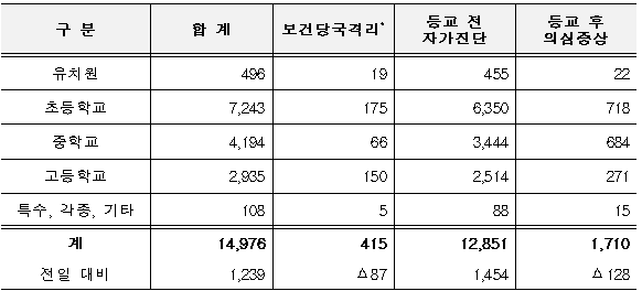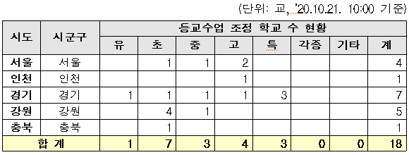 - 10.22.(10시 기준)15교에서 3교 증가(4교 등교수업 조정, 1교 등교수업 개시)